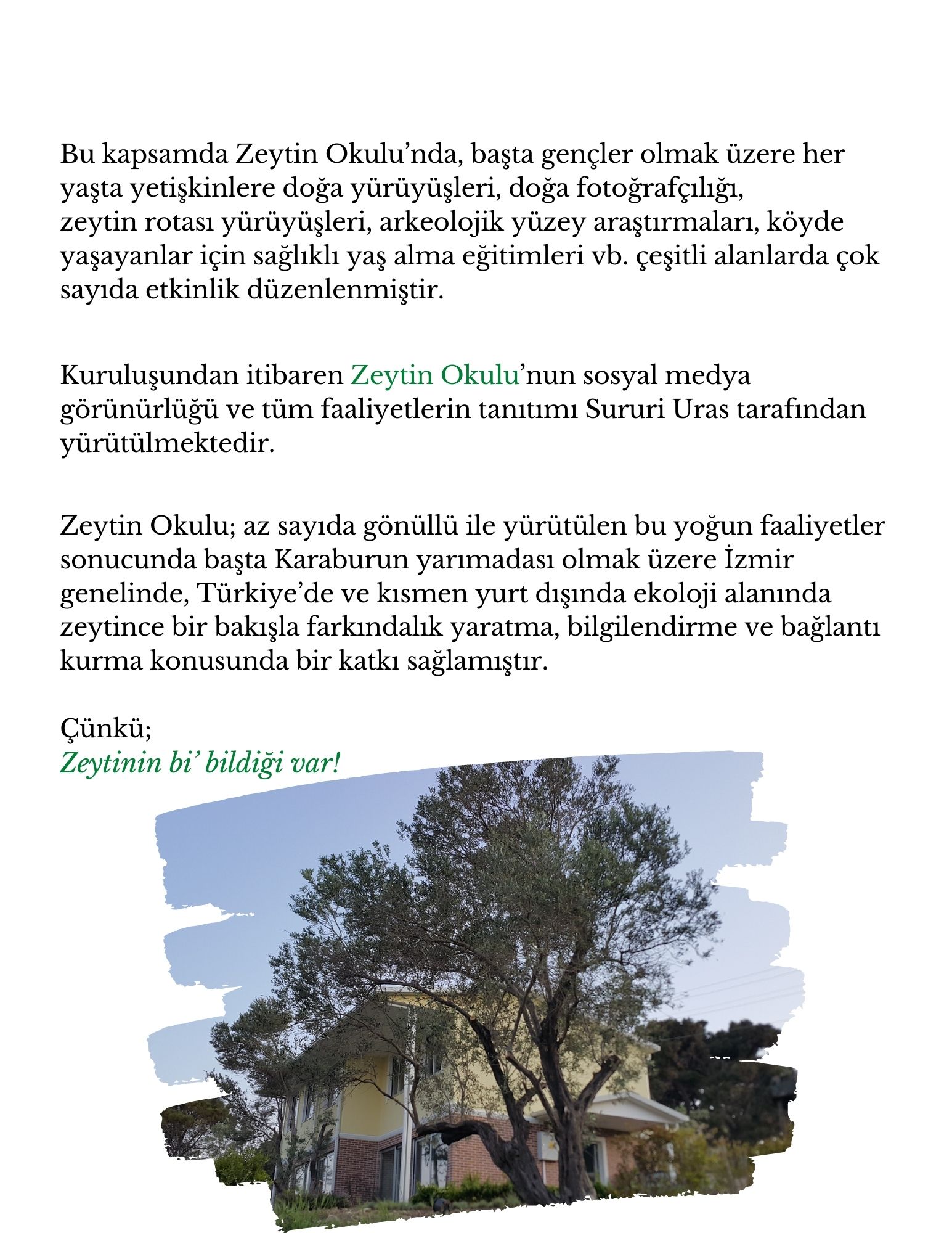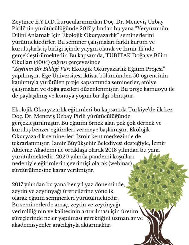 2.Zeytin Okulu bir bilim, bilgi ve eğitim merkezi olarak,